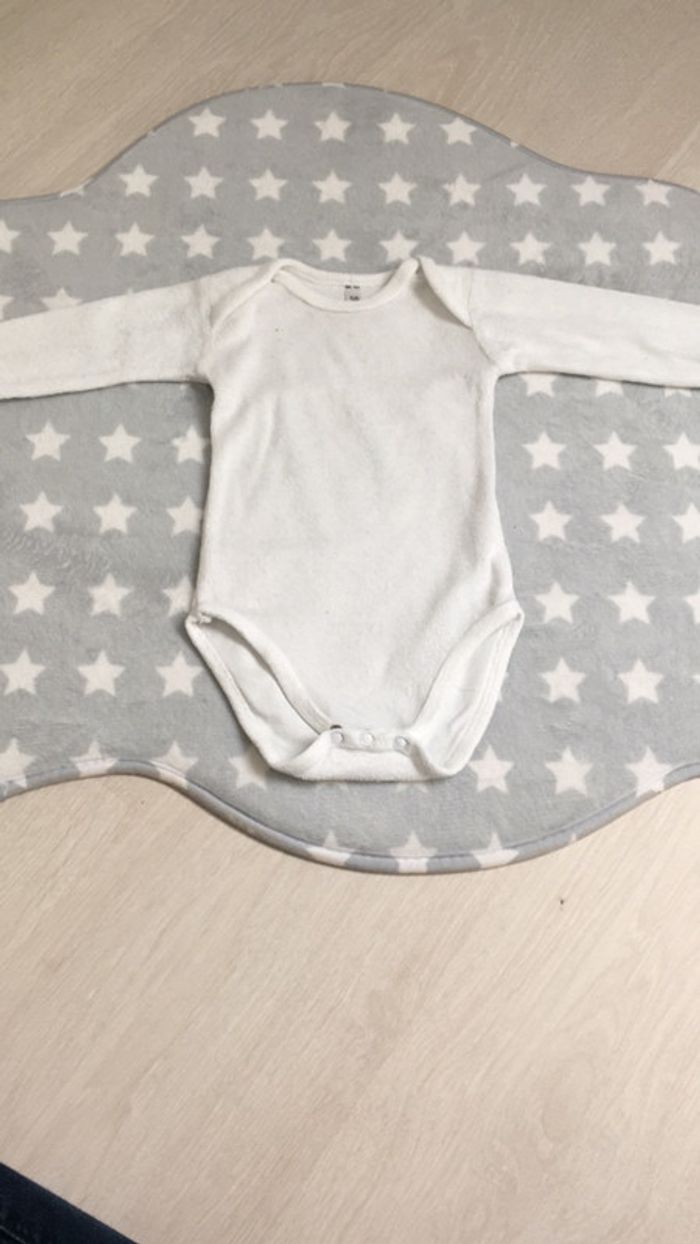 Body 1 mois/56 cm En velours (matière pyjama) Blanc Comme neuf