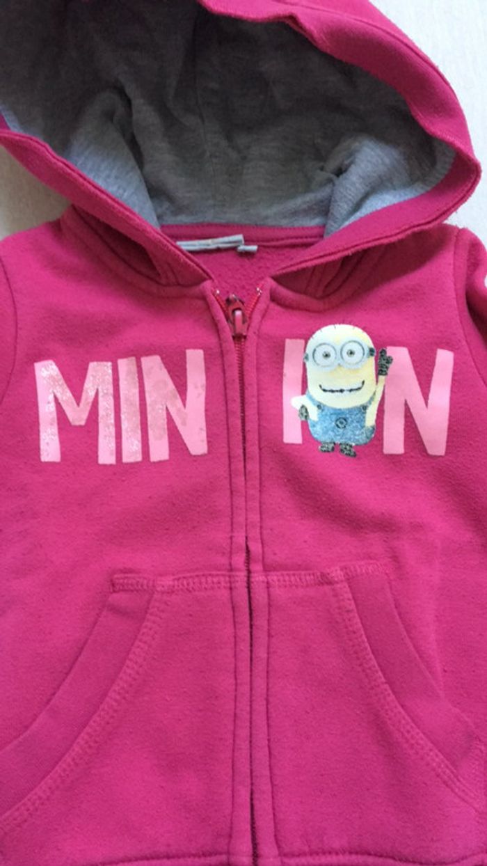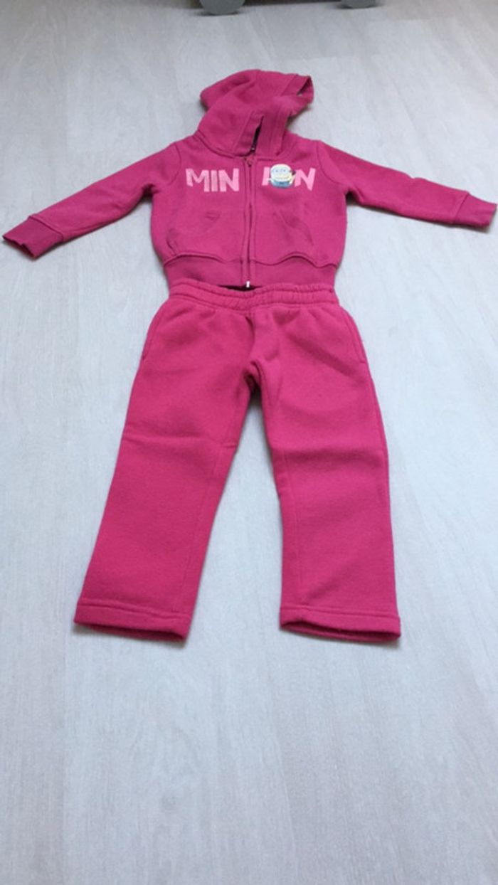 Gilet et pantalons rose très chaud 3 ans Avec des petites bouloches et le minion qui s'efface un peu