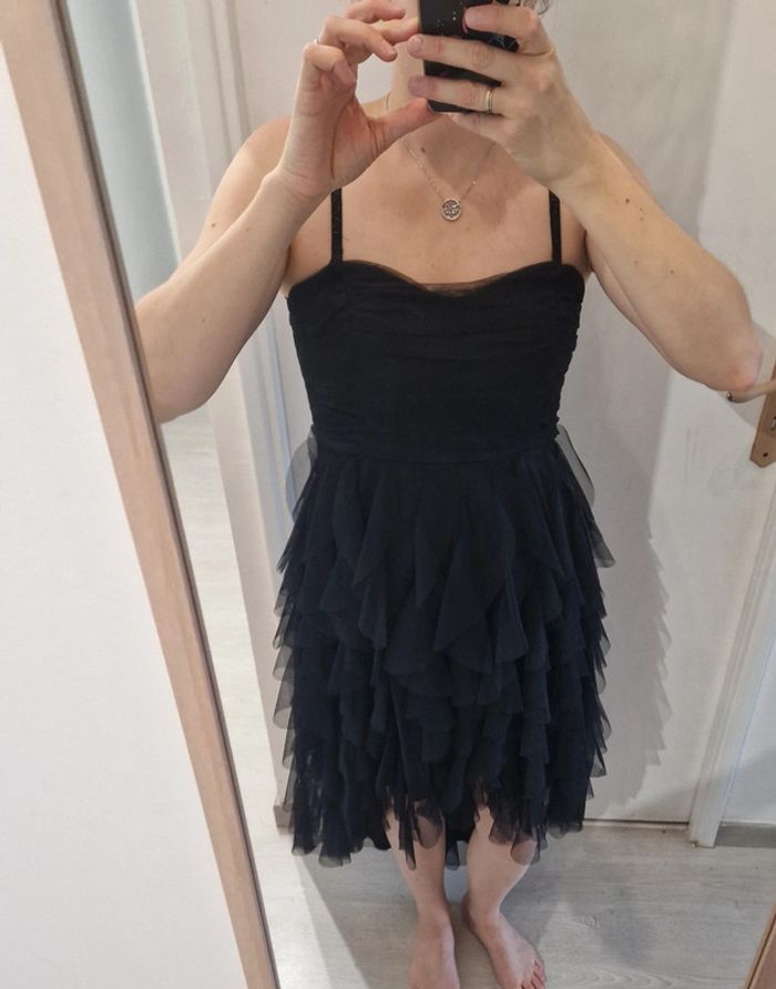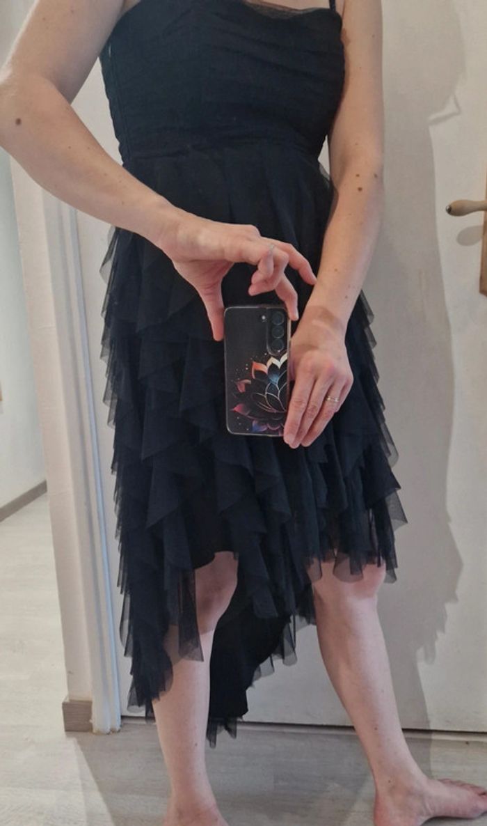 Très bon état pour ne pas dire neuve. Portée une fois pour une fin d'année. Bretelles amovibles - court devant long derrière Couleur noire avec quelques paillettes N'hésitez pas à faire des lots pour activer les réductions 😉 #mamzellemanu40