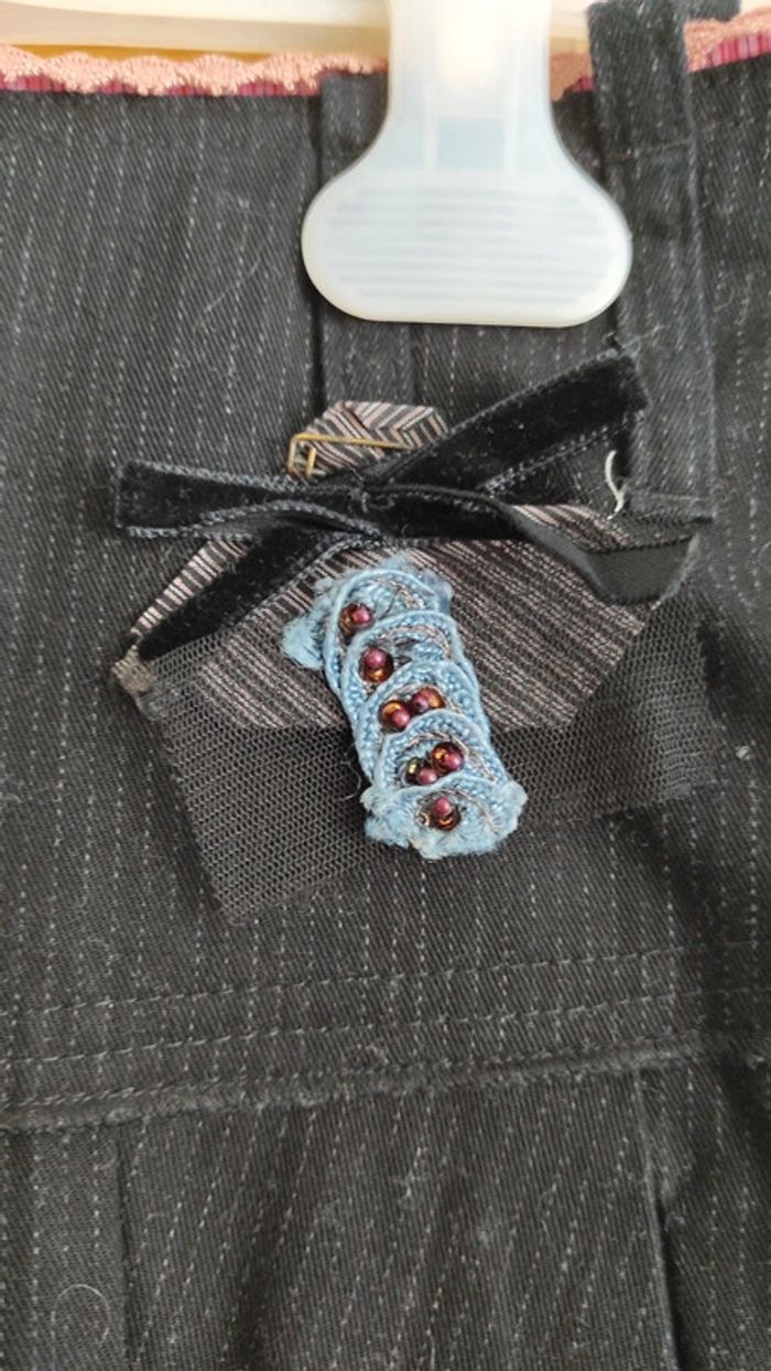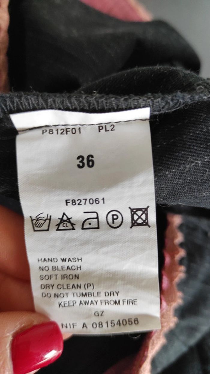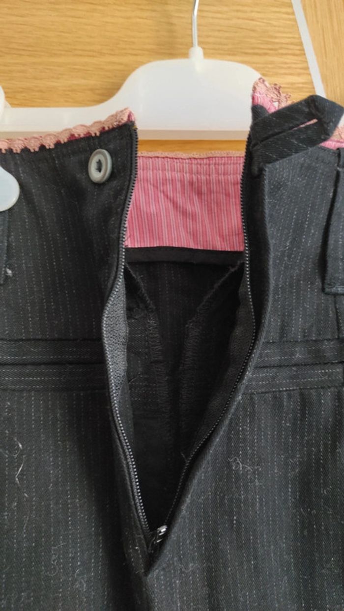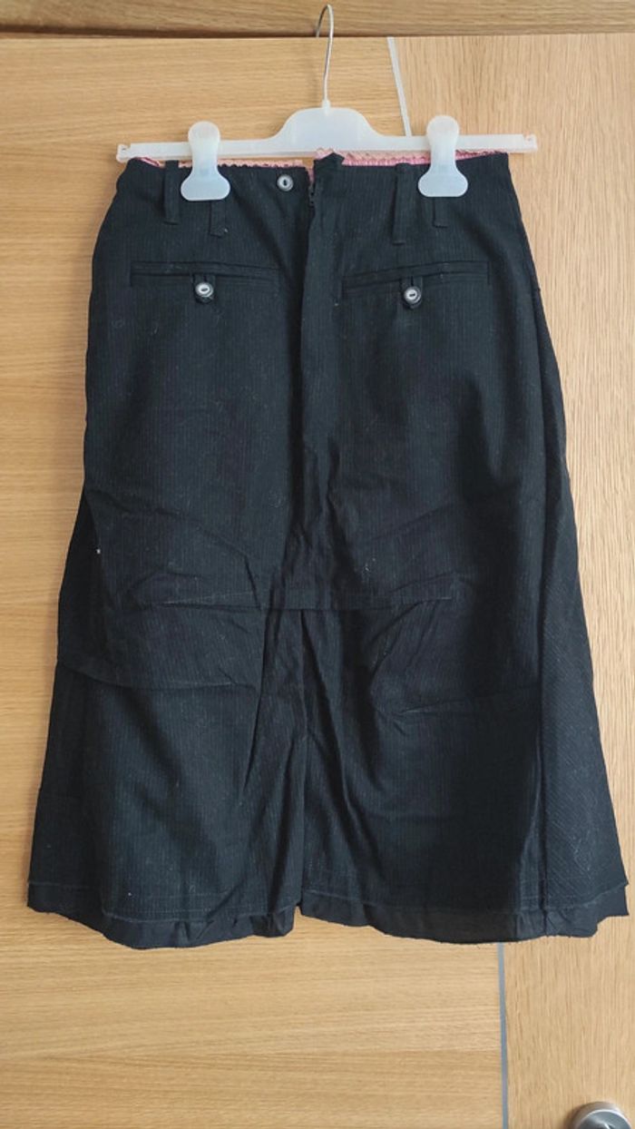 Mi-longue, taille 36. Noire avec petites rayures blanches