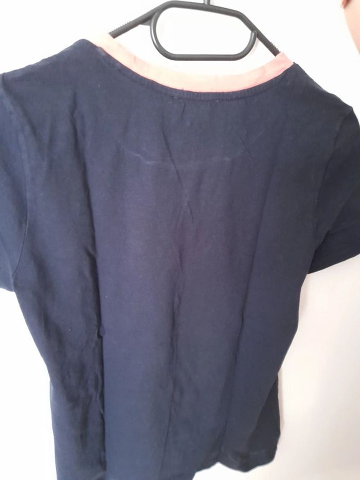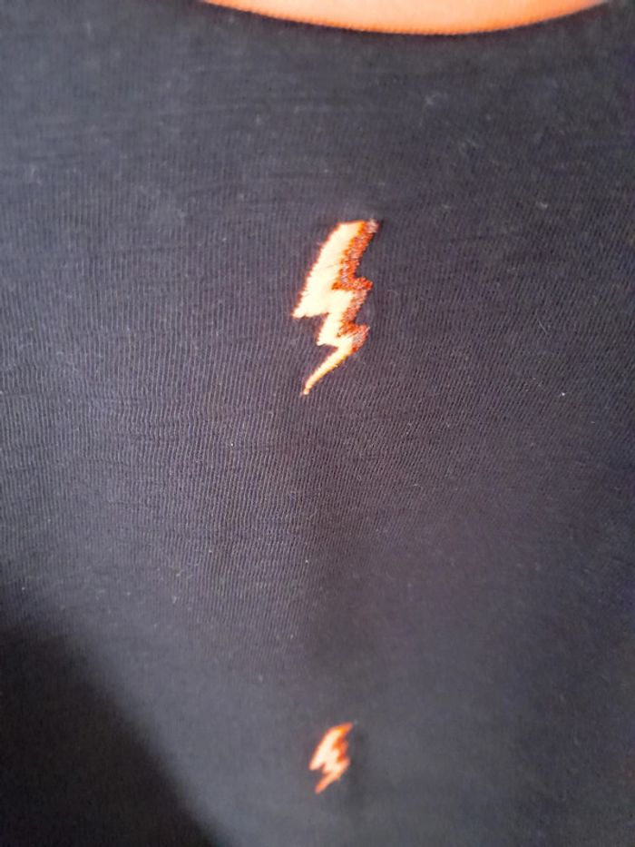 Tee-shirt marine avec des éclairs saumon Col rond saumon Dos uni marine