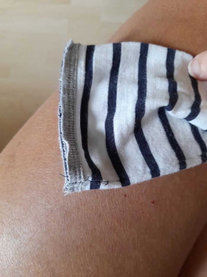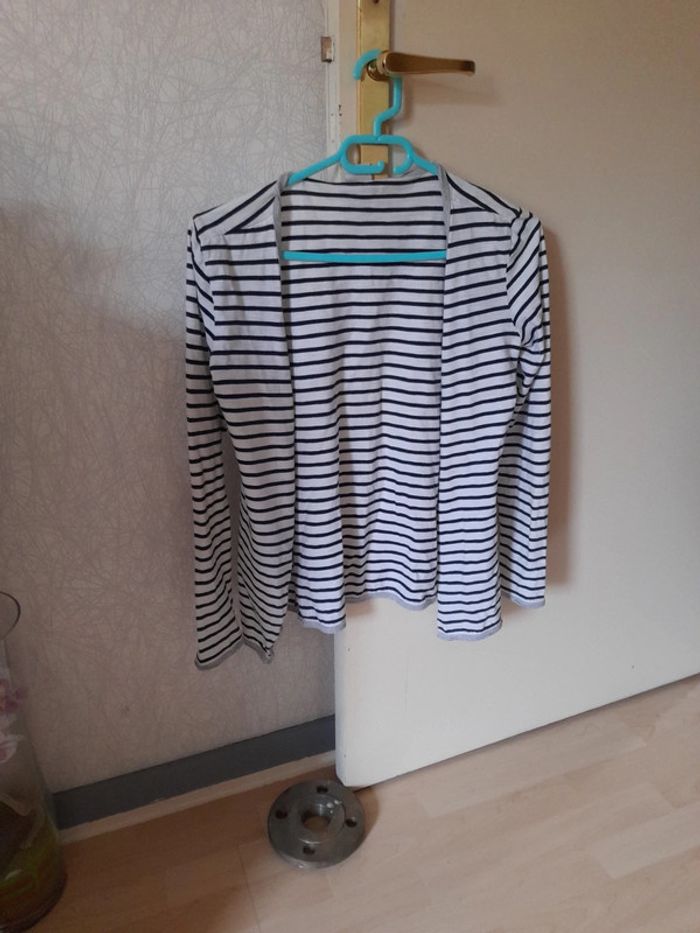 Gilet rayé marine blanc Pourtour des manches et de la fermeture gris Très proche du corps