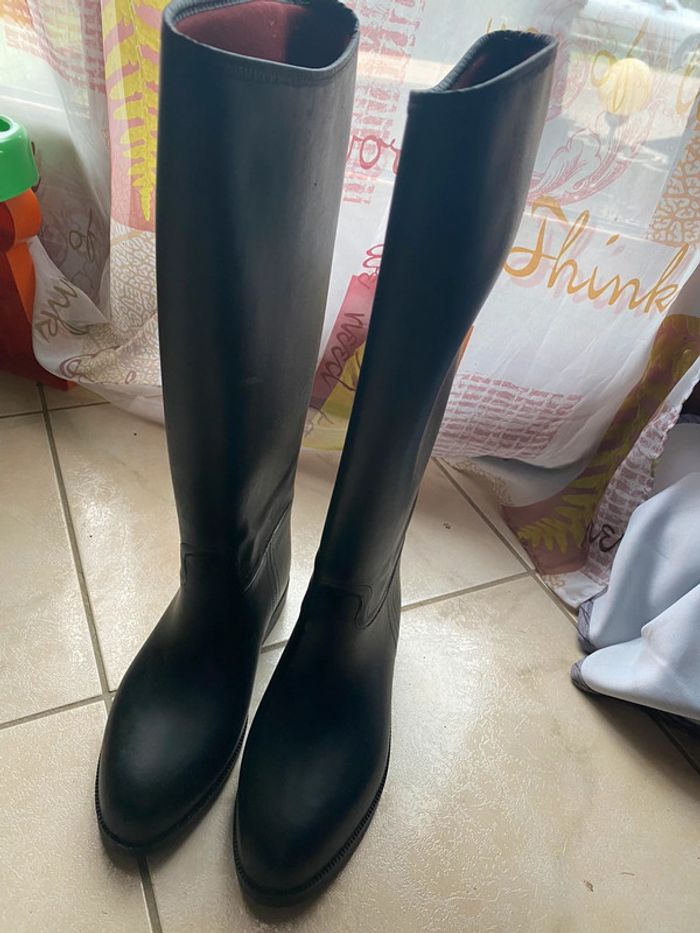 Magnifique bottes d’équitation très robuste , avec doublure bordeaux à l’intérieur . Confort ++++ Taille 39 D’autres bottes, vêtements d’équitation dans mes annonces . #titia31equitation J’ai du matériel d’équitation : filets , protections, protège boulets , bandes repos et polo ( pas en ligne car pas possible ici )
