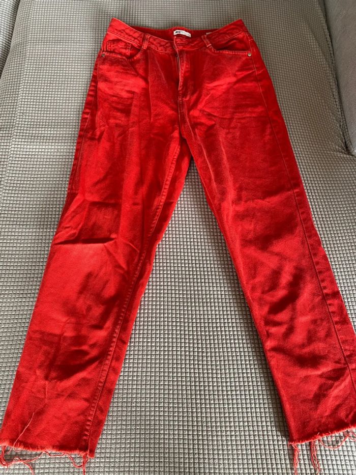 Jean Mom 3/4 Rouge taille 36 - photo numéro 1