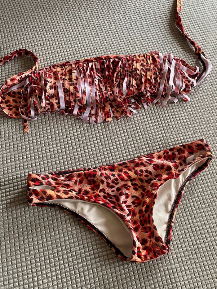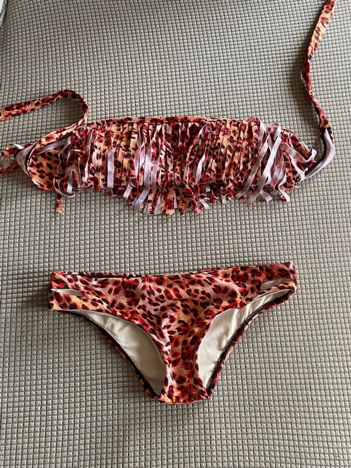 Maillot de bain léopard deux pièces à franges Taille S Neuf jamais porté #titia31maillots