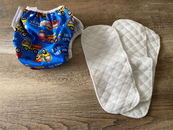 Couche lavable réutilisable bébé garçon 3-12 kilos Neuves + inserts coton neufs