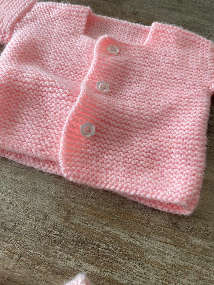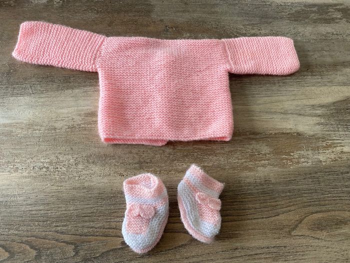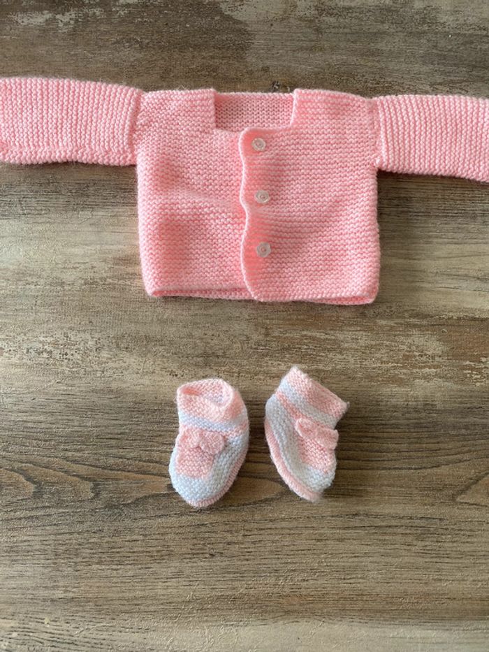 Ensemble bébé fille naissance 0/3mois gilet + chausson fait main - photo numéro 1
