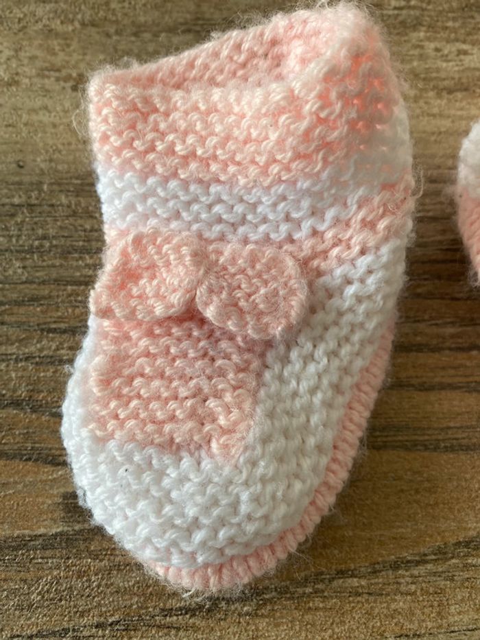 Ensemble bébé fille naissance 0/3mois gilet + chausson fait main - photo numéro 2