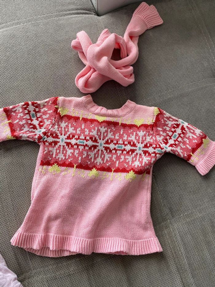 Lot vêtements bébé fille 1 mois pull laine , écharpe et salopette chaude, chaussons