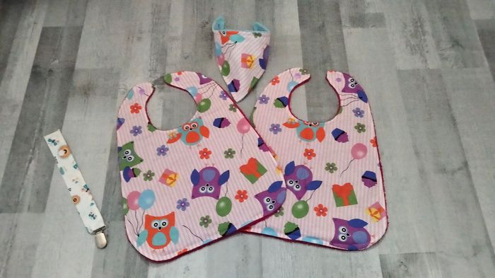 Lot de 3 bavoirs dont un bavoir bandana et une attache tétine Handemade