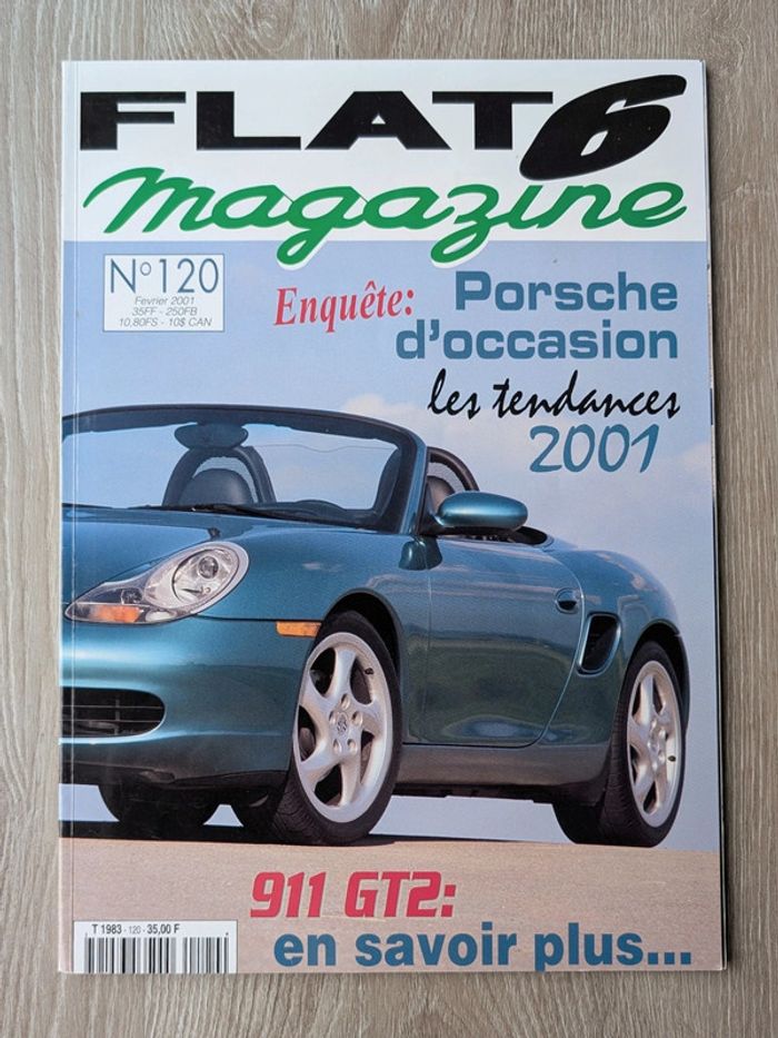 #_Porsche_#_Flat6_ numéro 120 (février 2001) 996 GT2, 911 Turbo 3.6, 993 Cabriolet, 356 Cabriolet Pré-A, dossier 912, Carrera RS Touring, Porsche aux USA, technique : calage de la distribution (964)... 100 pages D'autres numéros disponibles dans mon dressing