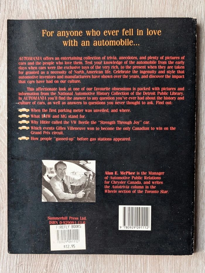 #_Livre_#_auto_ Automania, The Complete Book of Automobile Trivia Recueil de faits divers, d'anecdotes et de nombreuses photos de voitures en noir et blanc. 160 pages en langue anglaise