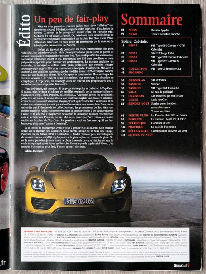 #_Porsche_ German Cars numéro 14 (juillet 2015) 991 Carrera 4 GTS cabriolet, 944 2.5 Targa, 993 Carrera cabriolet, 997 Carrera S cabriolet, 911 Speedster 3.2, 911 GT3 RS, 928 S2, 996 Turbo 3.3, tracteur Diesel P 111... 116 pages