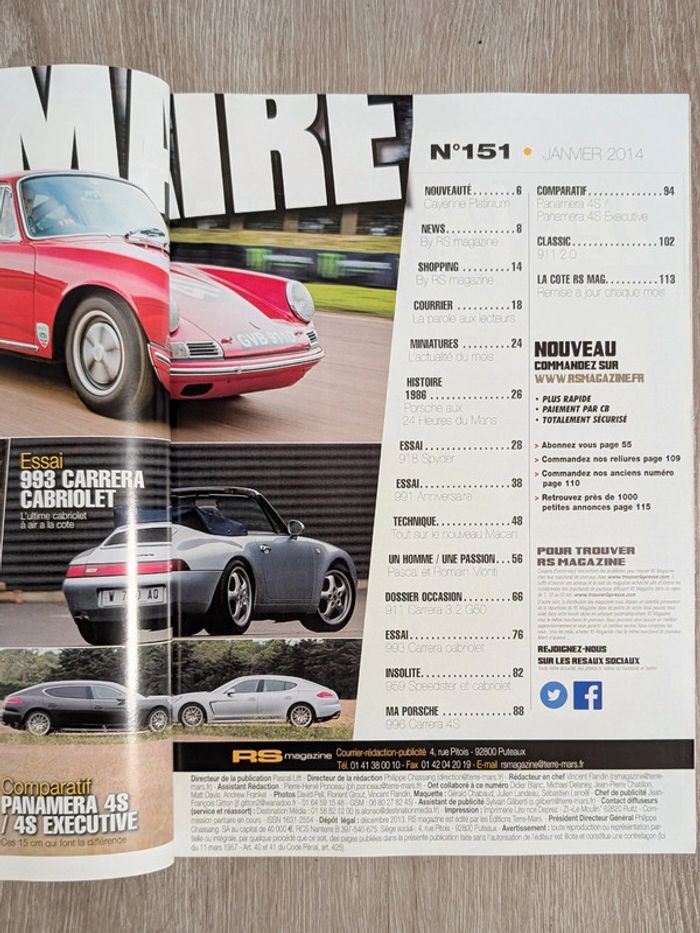 #_Porsche_#_RSmag_ numéro 151 (janvier 2014) 918 Spyder, Porsche aux 24 Heures du Mans 1986, 959 cabriolet/speedster, 991 50 ans, 911 Carrera 3.2 G50, Macan, 996 Carrera 4S, Panamera 4S vs 4S Executive, 993 Carrera Cabriolet, 911 2.0 de Vic Elford... 164 pages D'autres numéros disponibles dans mon dressing