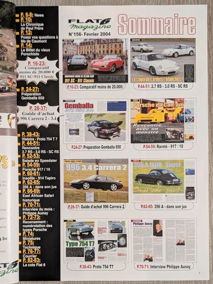#_Porsche_#_Flat6_ numéro 156 (février 2004) 911 SC vs 911 Classic, préparation Gemballa GTR 650 Evo, dossier 996 3.4 Carrera 2, Type 754 T7, 911 Carrera RS 2.7, SC/RS et RS 3.0, 917 Can Am, VW Porsche 914/6 "Tapiro", 356 A 1600 Super, interview Philippe Aunay... 124 pages D'autres numéros disponibles dans mon dressing