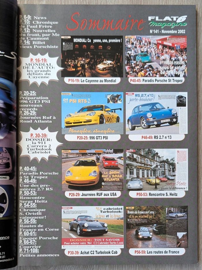 #_Porsche_#_Flat6_ numéro 141 (novembre 2002) 911 PSI RTS 2, 964 Carrera 2 Cabriolet Turbo Look, rareté 911 Carrera RS 2.7 n°13... 116 pages D'autres numéros disponibles dans mon dressing