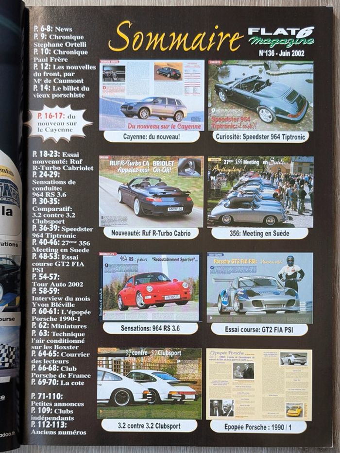 #_Porsche_#_Flat6_ numéro 136 (juin 2002) Ruf R-Turbo Cabriolet, 964 Carrera RS, 3.2 vs 3.2 Club Sport, Speedster 964 Tiptronic, 911 GT2 FIA PSI... 116 pages D'autres numéros disponibles dans mon dressing