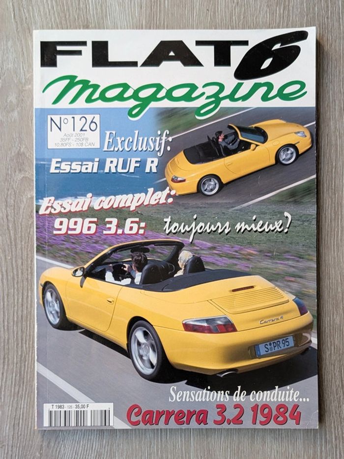 #_Porsche_#_Flat6_ numéro 126 (août 2001) 996 3.6, RUF R Turbo, 911 Carrera 3.2, Speedster 964 Turbo look, Boxster S DP Sport, 911 Turbo S 1989, 911 Carrera 2.8 RSR, 356 Speedster... 108 pages D'autres numéros disponibles dans mon dressing