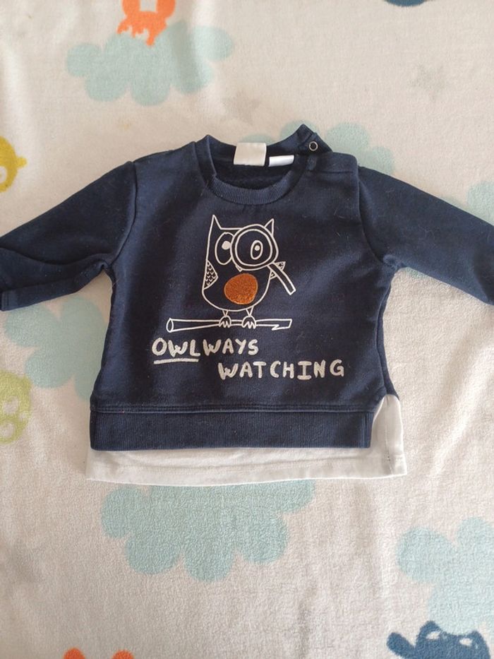 Sweat bleu avec bordure T-shirt 6 mois Zara baby boy Très bon état #6mois #6moisgarçon #6moislexou_77 #zarababyboy68cm