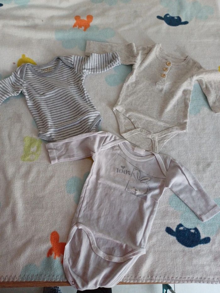 Lot 3 bodys manches longues 3 mois 1 body taché au dos #3mois #3moisgarcon #3moislexou_77