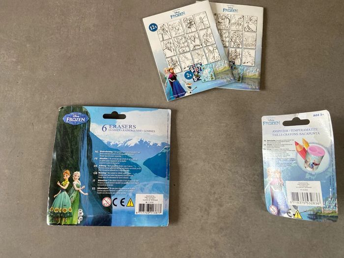 Disney ,le lot de 4 , une barquette de 6 gommes, 2 carnets et 1 taille crayon