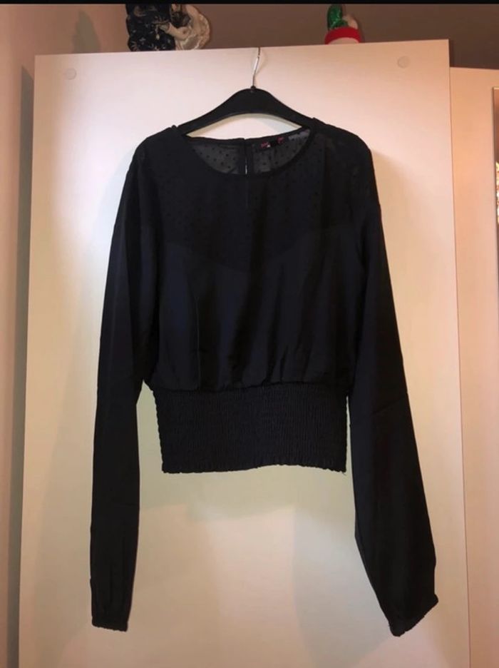 blouse noir à pois jamais porté #joannaaaXS #blousenoire #blouseapois