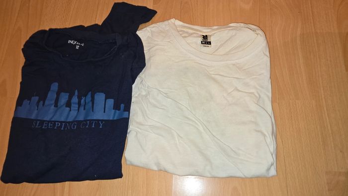 Vends lot de 2 tee-shirt : un noir manches longues et un blanc manches courtes. Taille M
