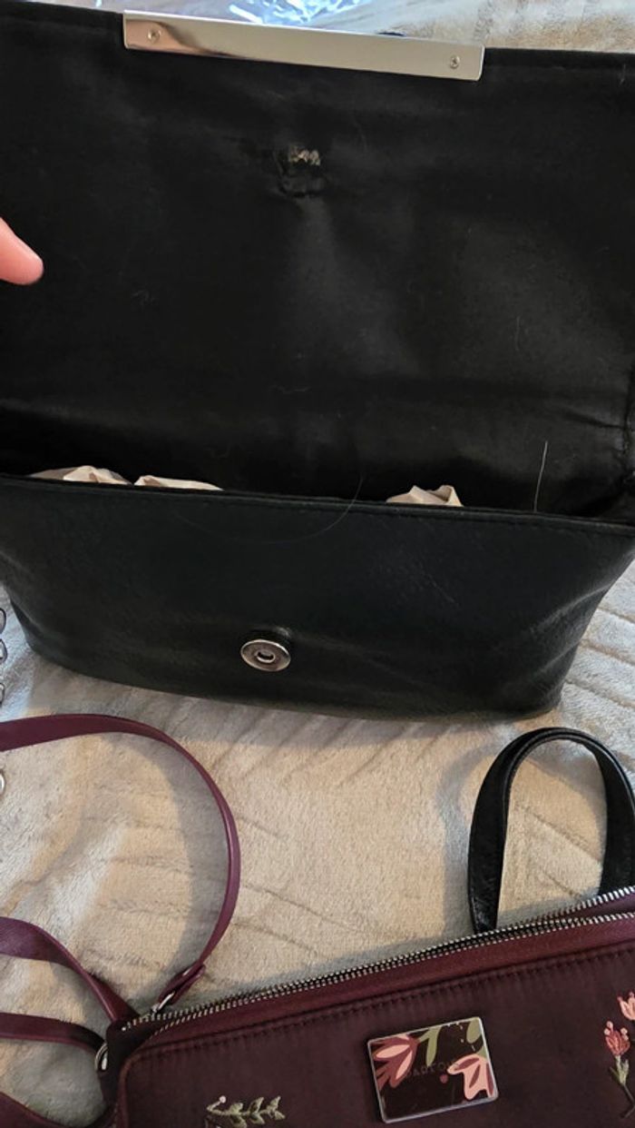 Vends lot de3 sacs à main en bandoulière. 2 noirs et un violet avec fleurs brodées. Possibilité d'acheter à l'unité : 5 euros ou 10 euros les 3. Le sac du milieu n'a plus l'attache pour le fermer. Sinon très bon état