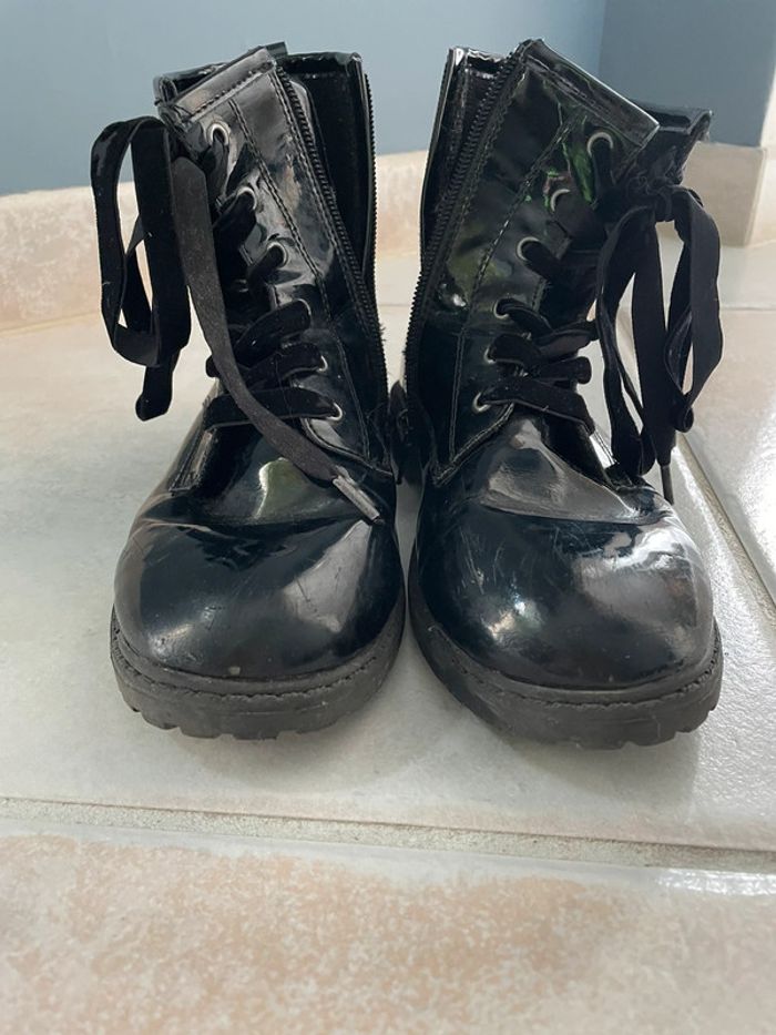Chaussure fille montante vernis noire - photo numéro 2