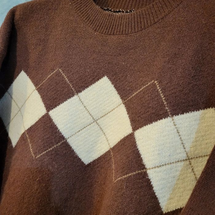 Pull  Vintage - Sans Marque - Marron & Crème  - Oversize - photo numéro 2