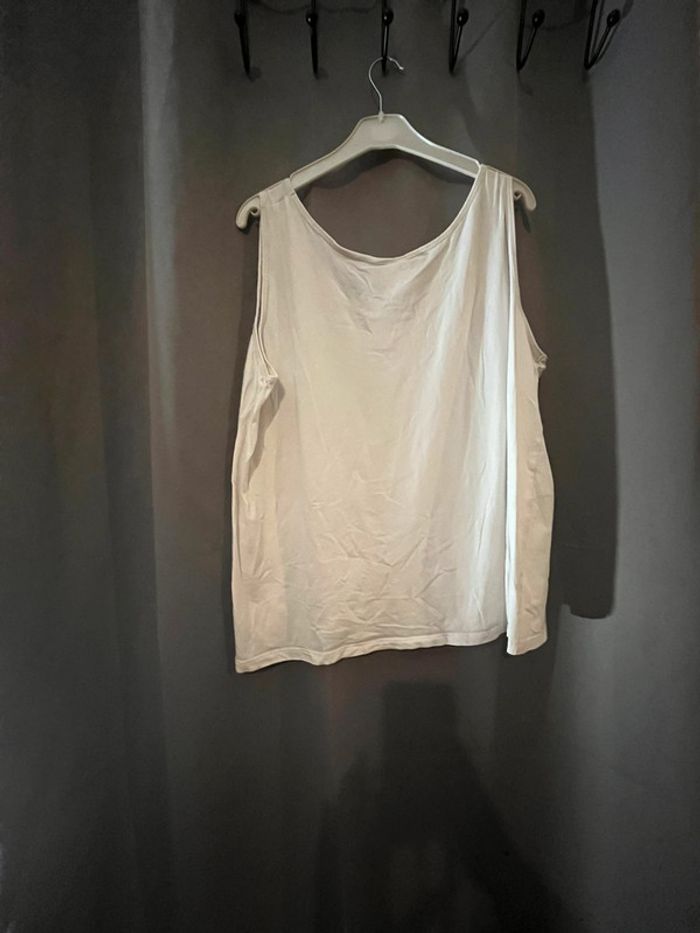 Débardeur blanc basic en très bon état. Marque: up2fashion Taille: 56-58