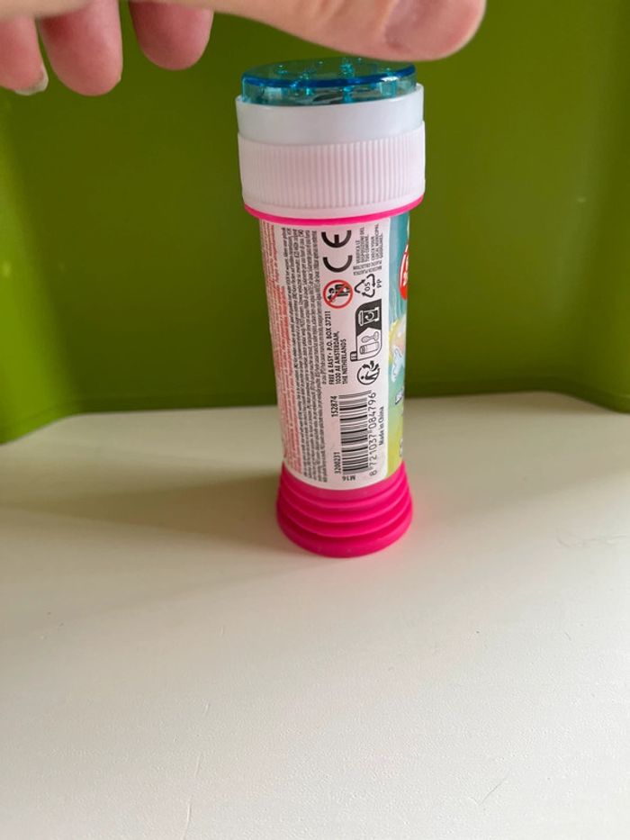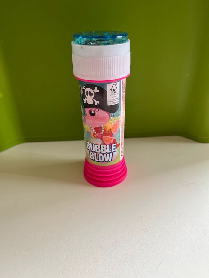 Souffleur à bulles pour enfants, neuf de 60 ml. Disponible en bleu, rose ou orange.