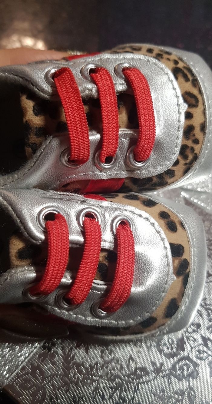 Petites baskets neuves léopard et argentées Taille 16 17, pour nouveau né Jamais portées