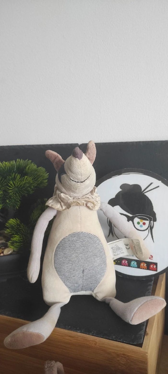 Peluche musicale Aldo chien moulin roty Aimé et Céleste beige étoile rond rayure rayé bleu - photo numéro 1