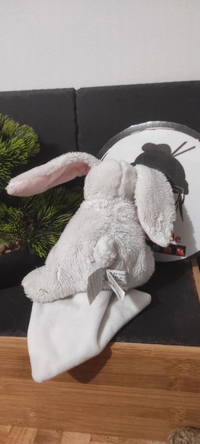j'aime mon doudou et compagnie peluche lapin mouchoir blanc rose dc2914 coeur - photo numéro 1