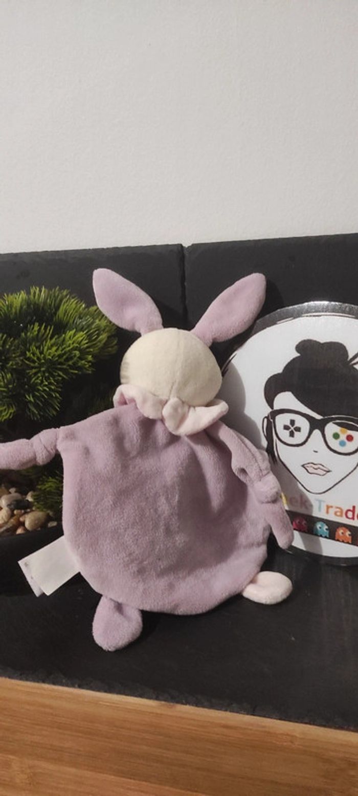 doudou lapin baby nat violet rose ballon blanc collerette noeud mauve - photo numéro 1