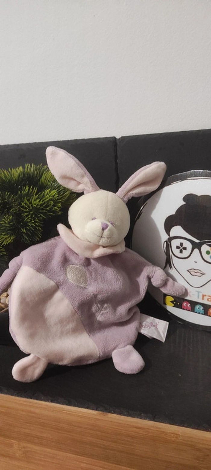 doudou lapin baby nat violet rose ballon blanc collerette noeud mauve