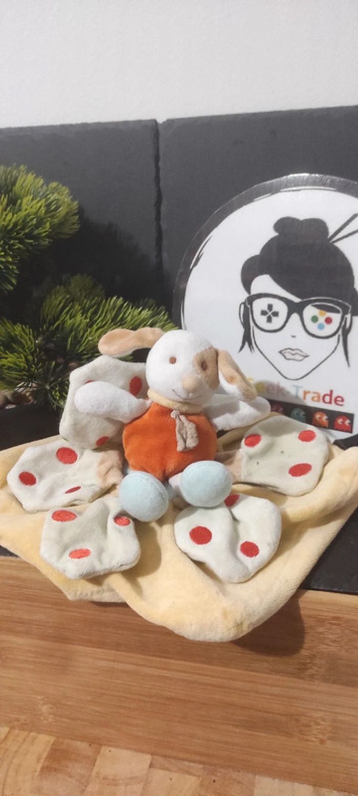 Doudou et Compagnie Chien rond plat jaune vert orange fleur petale pois - photo numéro 1