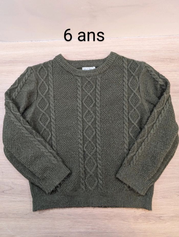 Pull en maille kaki neuf - Taille : 6 ans - photo numéro 1