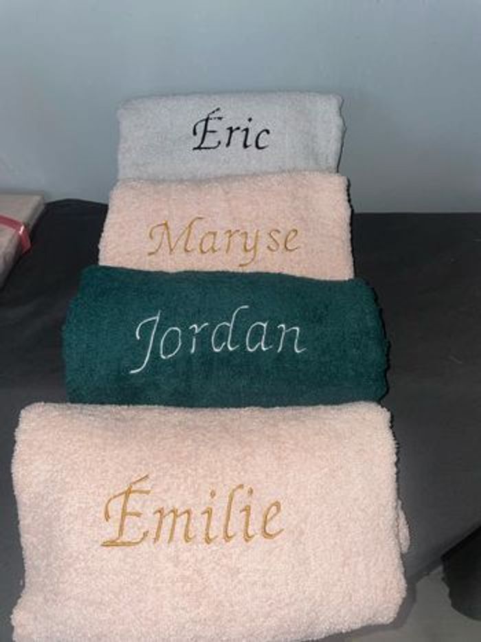 Serviette de toilette avec prénom brodé Plusieurs couleur disponible me demander Taille 50x100 cm Prix 13 euro la serviette avec le prénom brodé Autre taille disponible 70x140 cm prix 15 euro