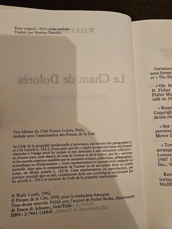 Livre "Le chant de Dolorès" de Wally Lamb. 1997.