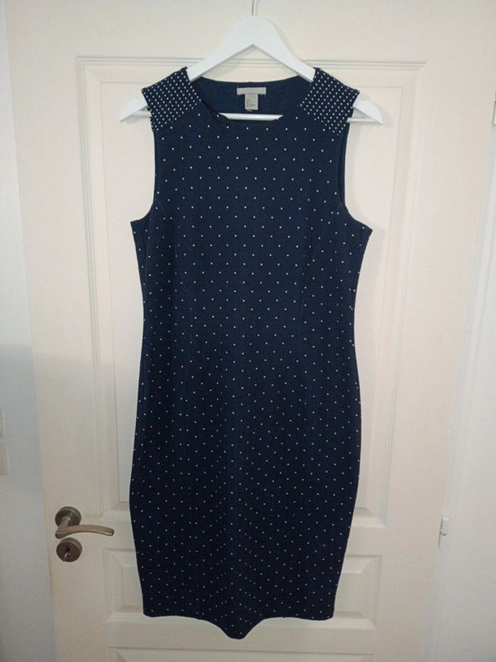 Robe coloris marine à pois blanc h&M taille L Matière très souple et agréable à porter Composition 95 % polyester 5 % élasthanne.