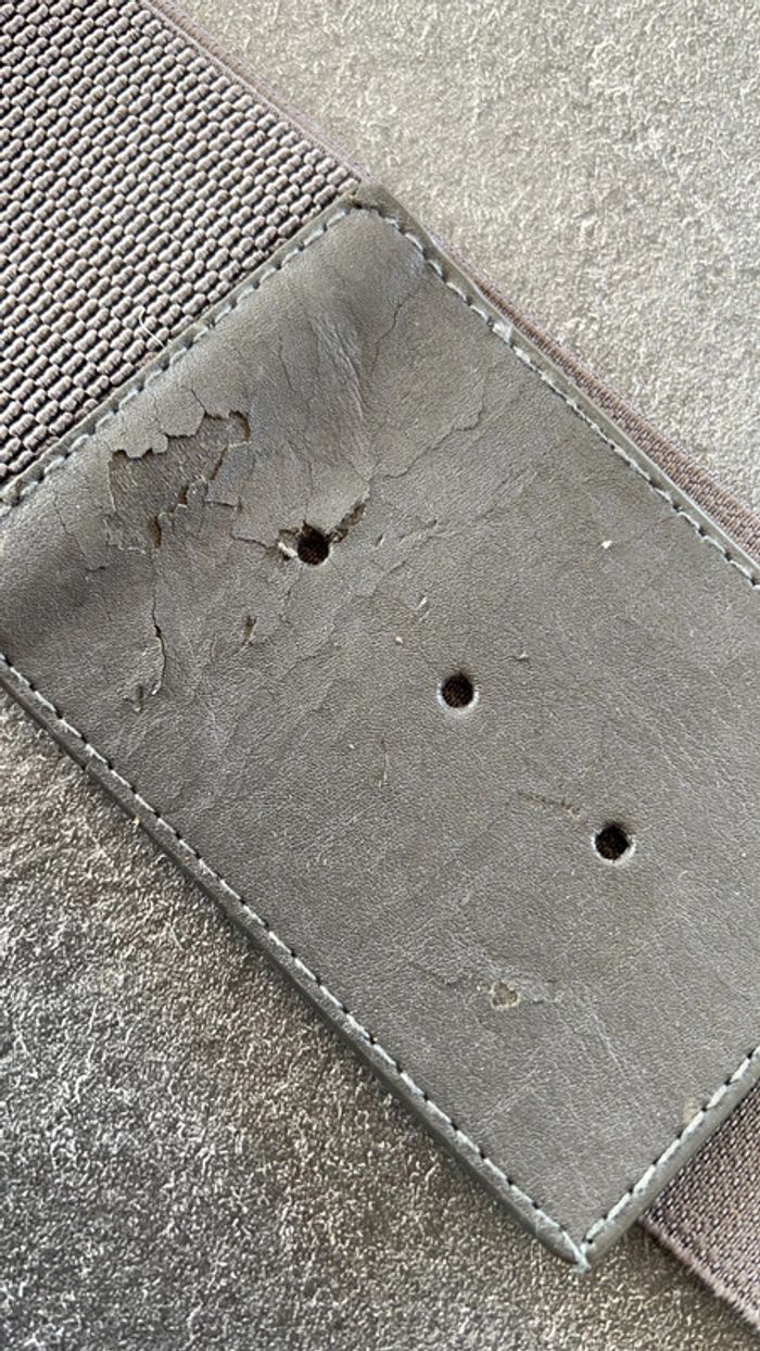 Ceinture élastique plumes Cuir du dessous abîmé mais cela ne se voit pas une fois la ceinture attachée Taille 75