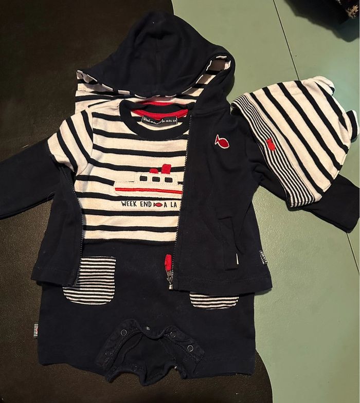 Barboteuse avec gilet et bonnet taille 6 mois garçon thème marin