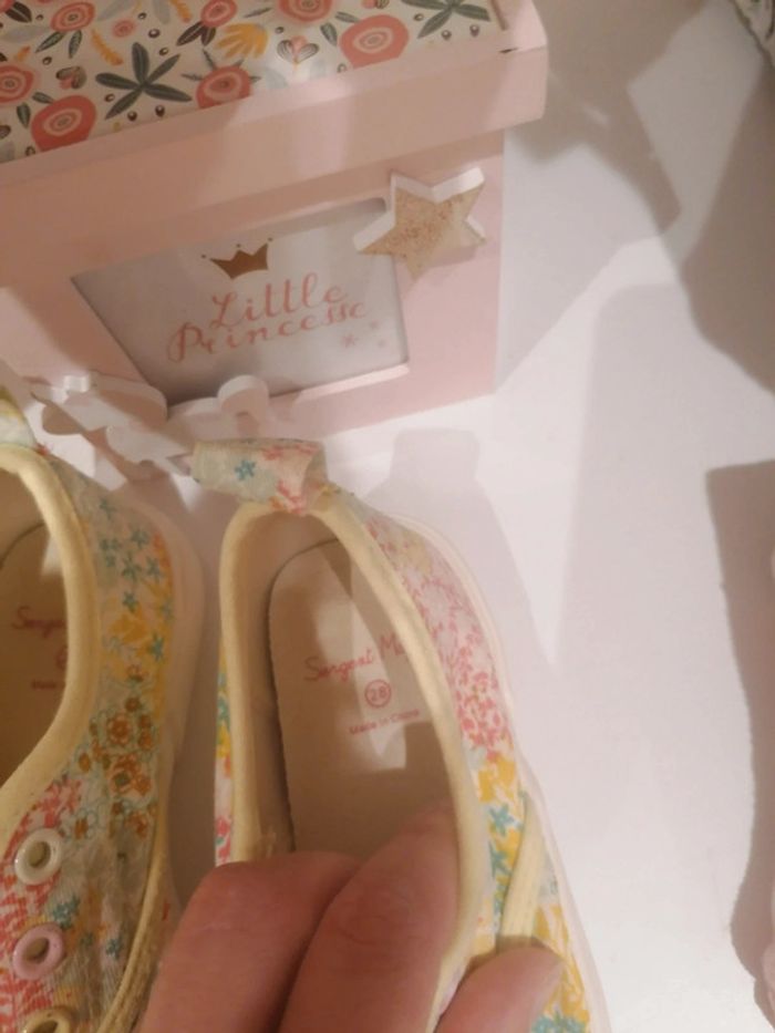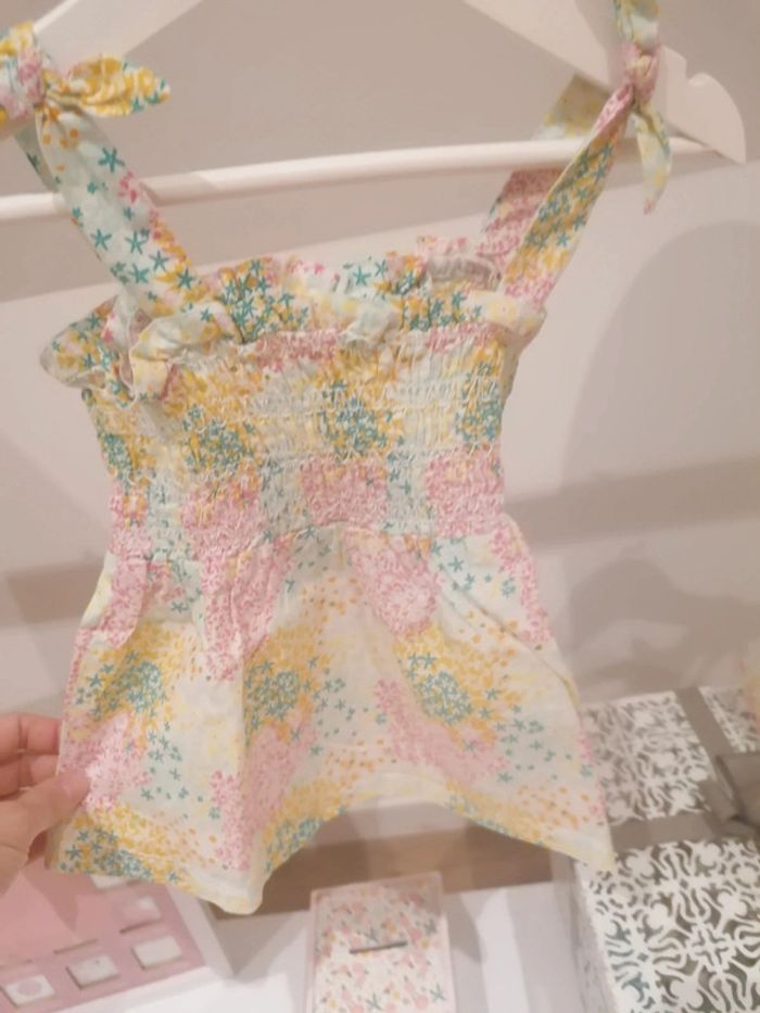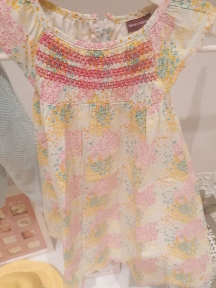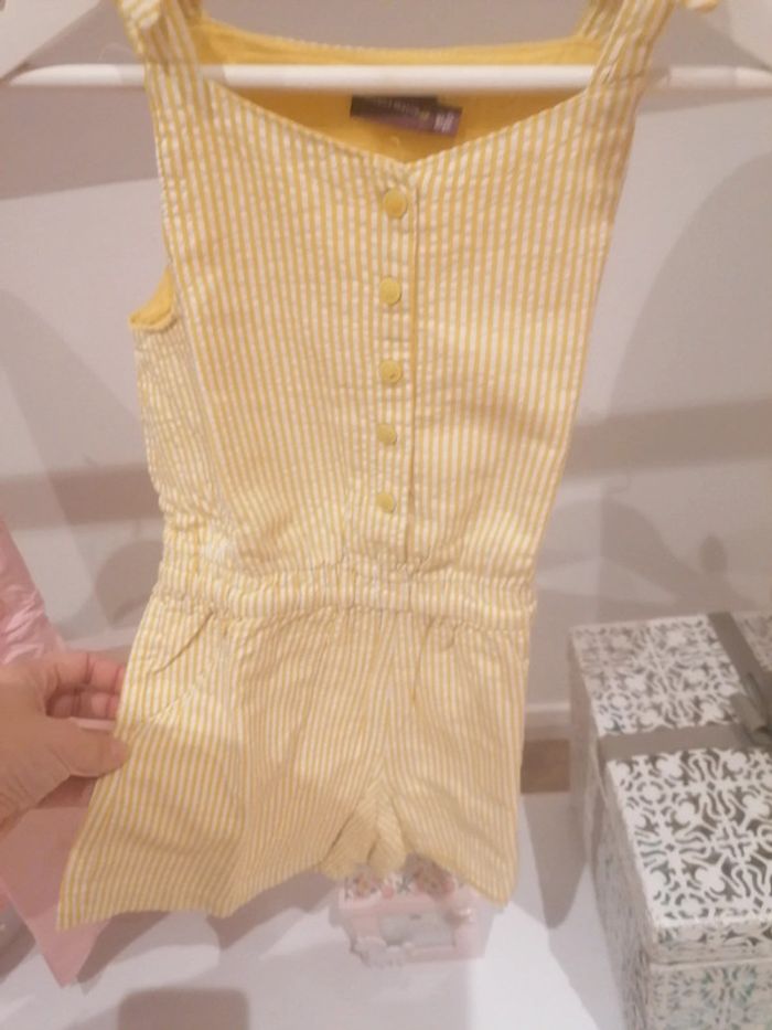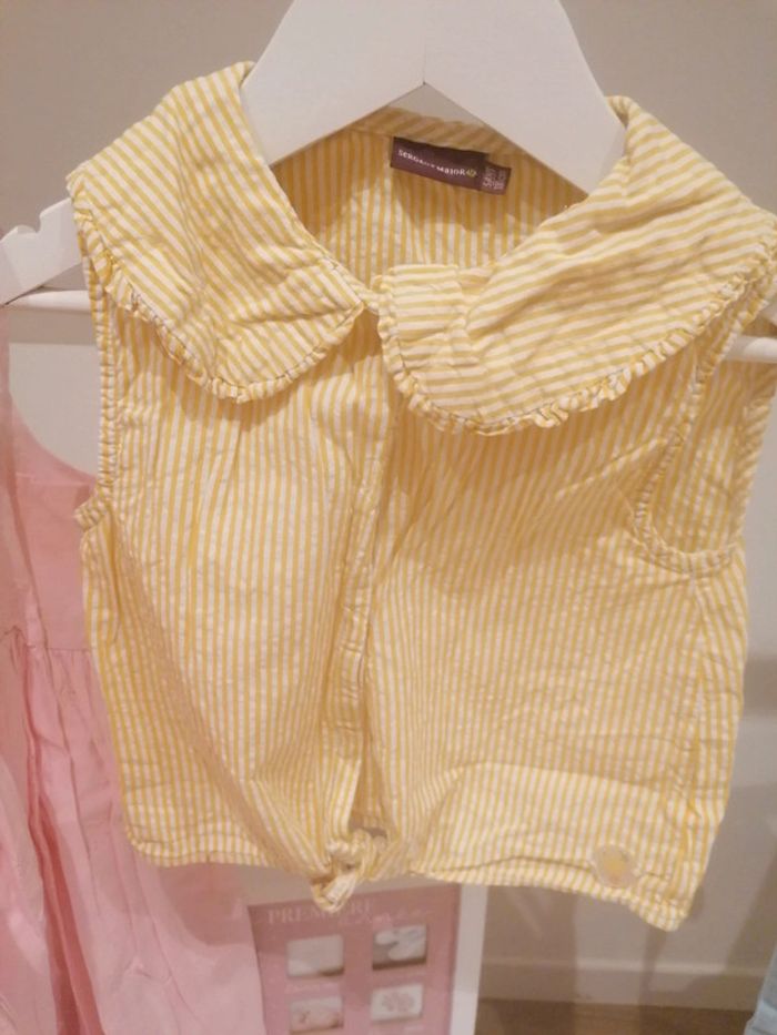 Magnifique lot de 18 pièces sergent major fille thème le vaillant petit requin 5ans été 2022 composé de : - blouse à rayures sans manche col -claudine basket en toile de type sleep one - casquette rayé rose et blanche - chapeau de paille à nœud imprimer - chaussettes basses beige - combishort à rayure jaune mimosa - débardeur multicolore à smoke - legging rose - legging multicolore - cardigan turquoise turquoise en maille mix major - pantalon en denim clair - robe en popeline rose à broderie fantaisie - robe multicolore à smoke imprimé fleuri - sac bandoulière à paillettes forme chat rose - short jaune pastel - t-shirt manches courtes jaune - t-shirt manches courtes beige et rose - accessoires cheveux très bon état général sauf mention contraire dans l'annonce. #delabarremelaniefille5ans