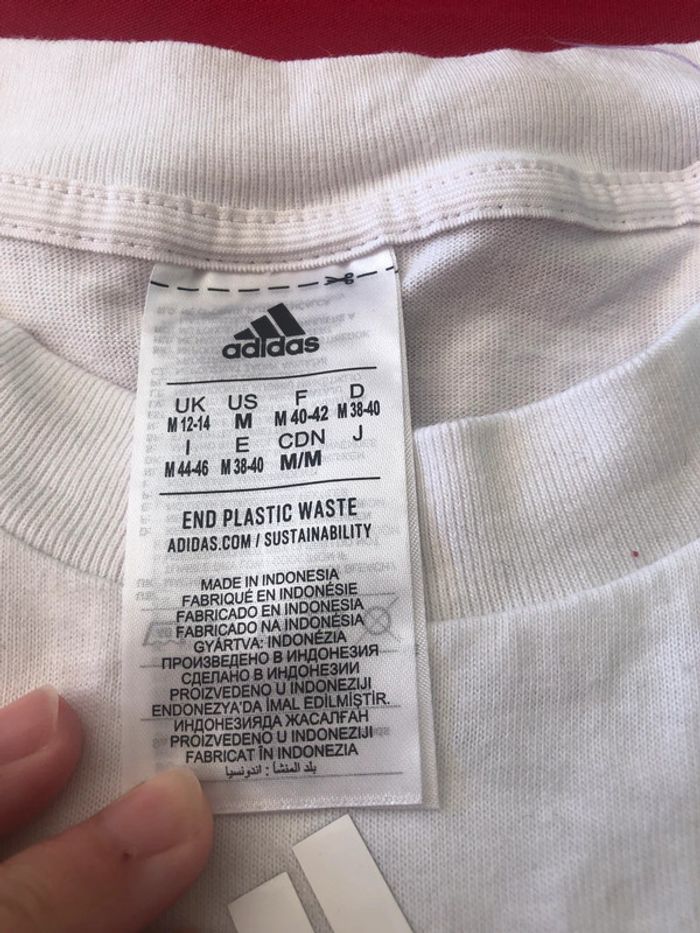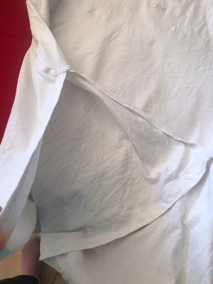 Tee shirt blanc large adidas. Taille M. avec ouverture sur les 2 côtes. Porte une fois.