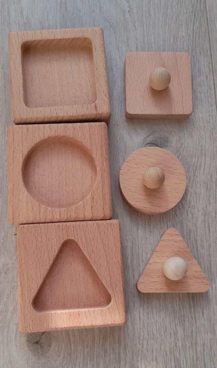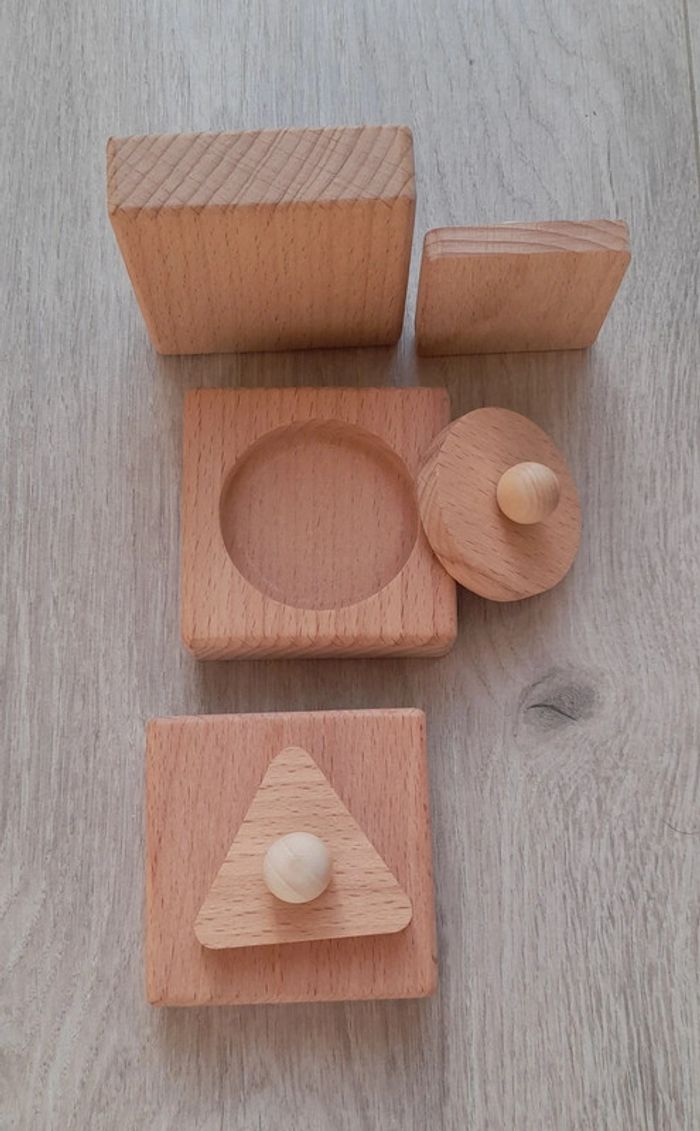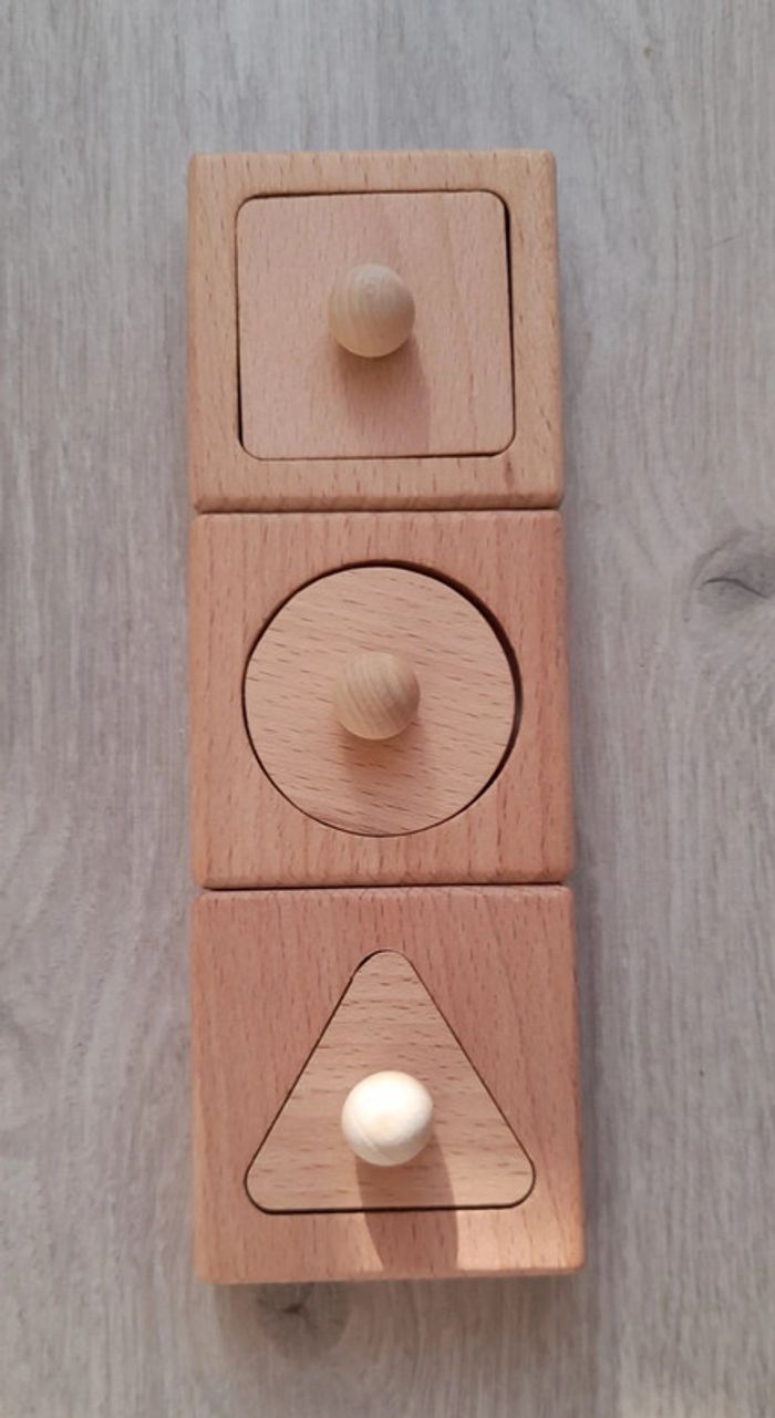 Magnifique ensemble de 3 pieces en bois pour le puzzle des formes géométriques.