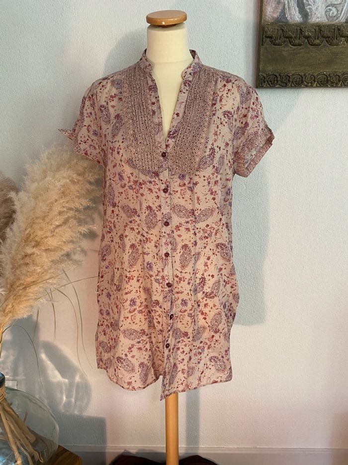 Chemisier taille 42 très bon état 🌿 N’ hésitez pas à consulter mes autres annonces de mon dressing trié par # et par catégories (dans à propos) ☺️ Idéal pour faire des lots ! 🤗 Je vend également différents vêtements : ✿ Fille de 0 à 24 mois / Garçon de 0 à 9 mois ✿ Femme taille XS ➡️ XXL ✿ Homme taille M/L. ✿ Déguisements, Disney, Ski.. ✿ Création de fiche Montessori.. 🌈 Maison non fumeur ! #laura_vznfemme #laura_vzntaillexlfemme #laura_vznteeshirtfemme