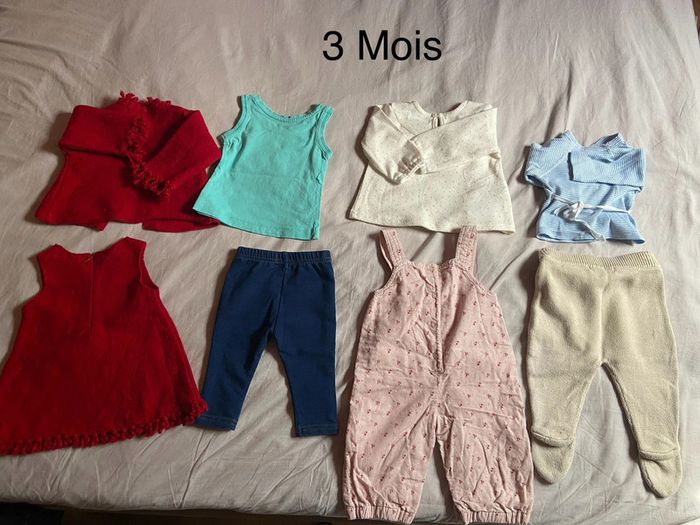 Bonjour Je vends lot fille 3 mois en tbe . Le lot comporte 8 articles . Marques diverses Réductions activées. #patricia09091980_lot3mois