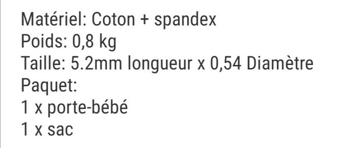 Écharpe porte bébé avec élastique Poids en 348g ❎